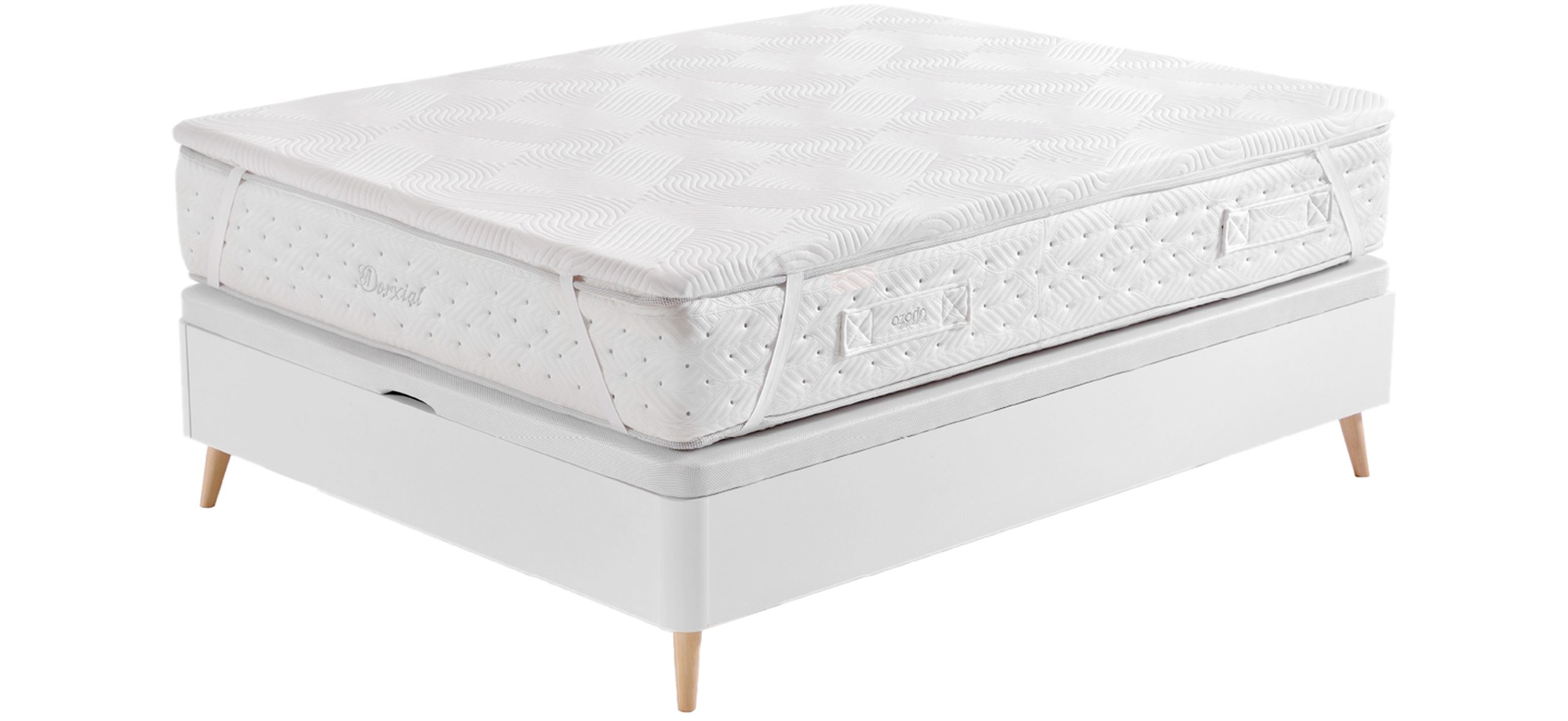 - Tapizado en tejido Strech desenfundable con cremallera, y una goma elástica en cada esquina para un mejor ajuste al colchón.